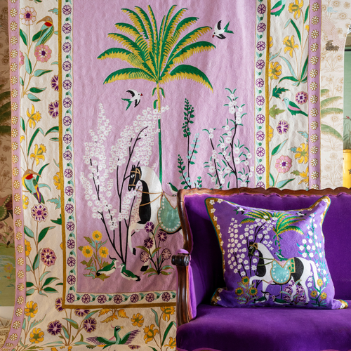 A Mughal Painting Crewel Embroidery Wool & Viscose Cushion