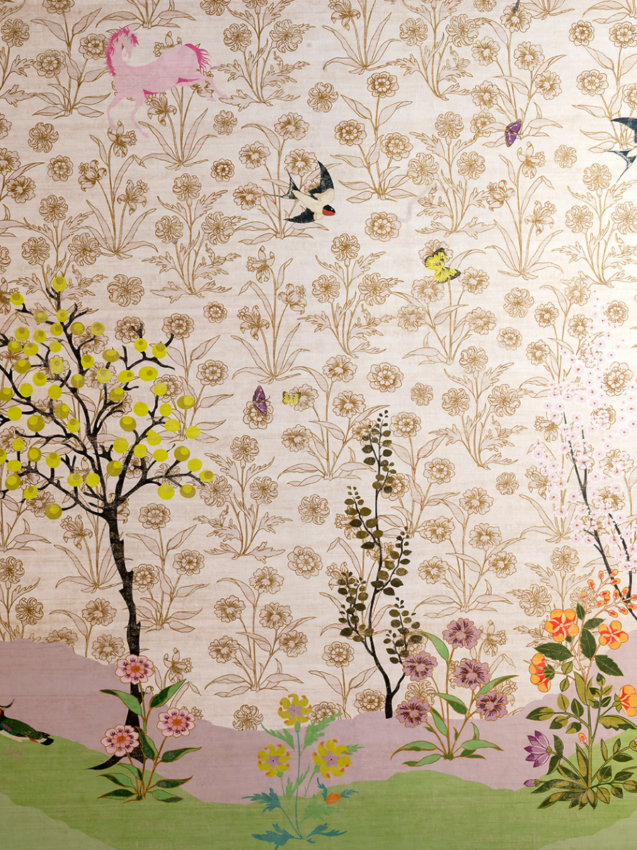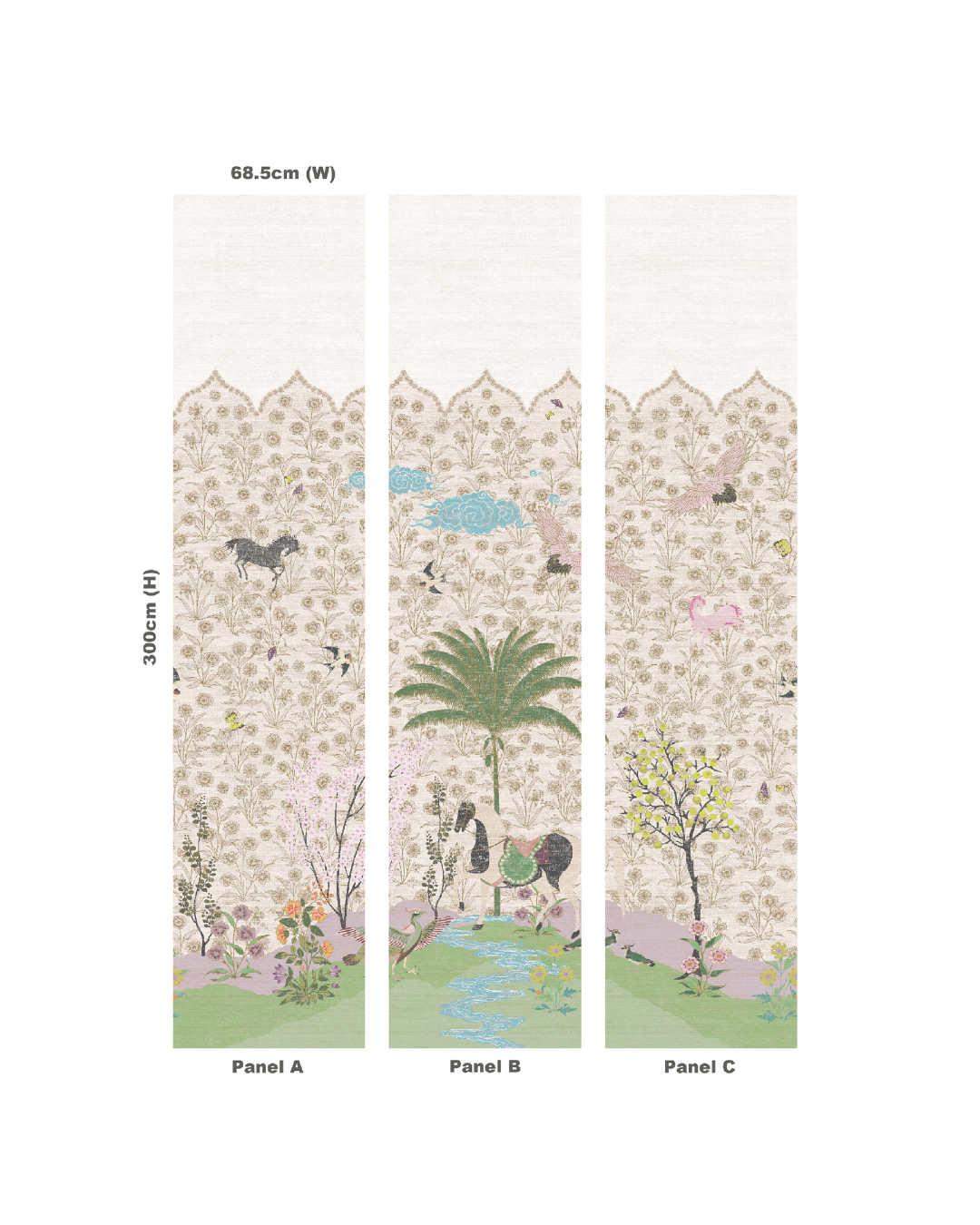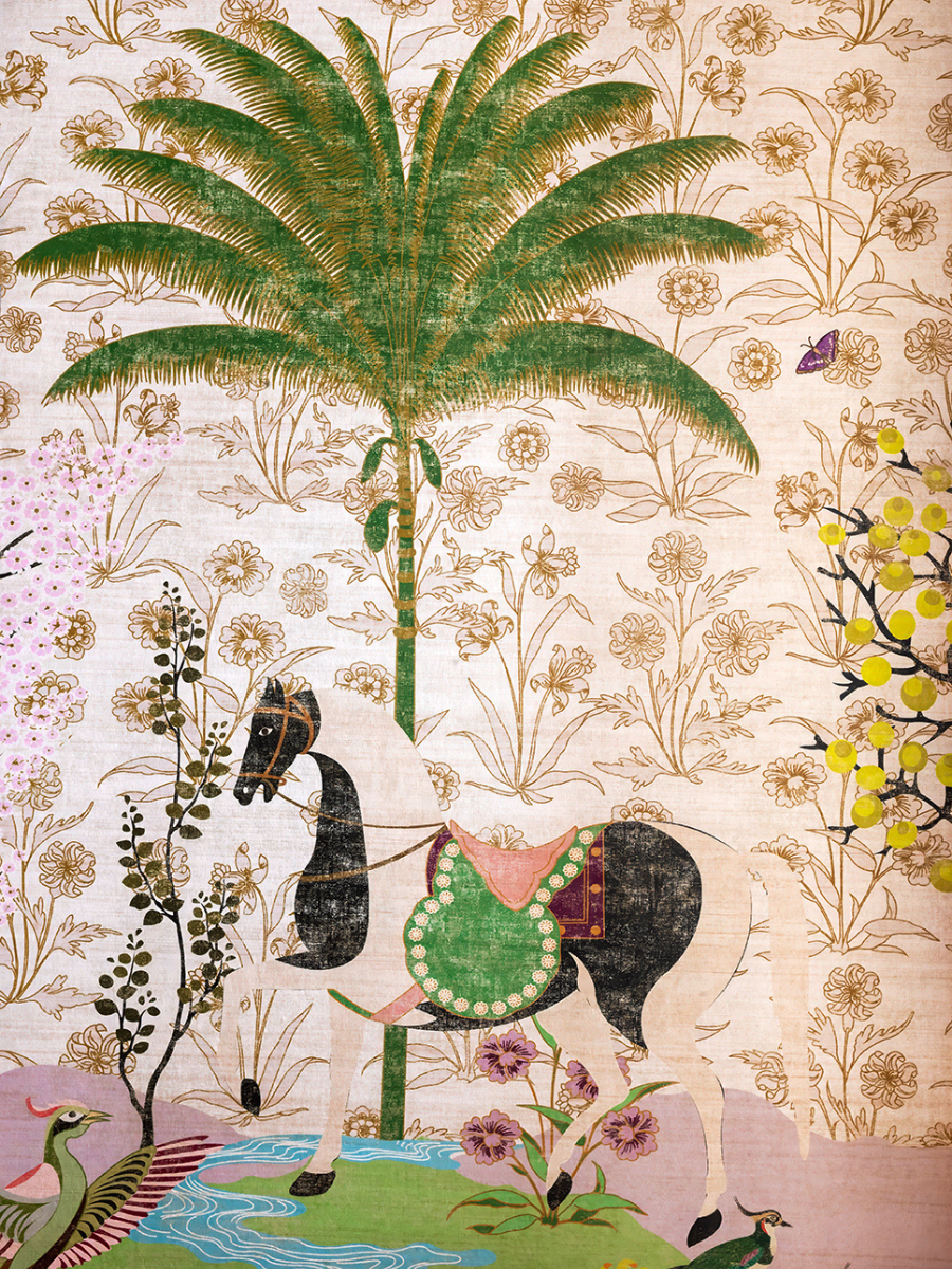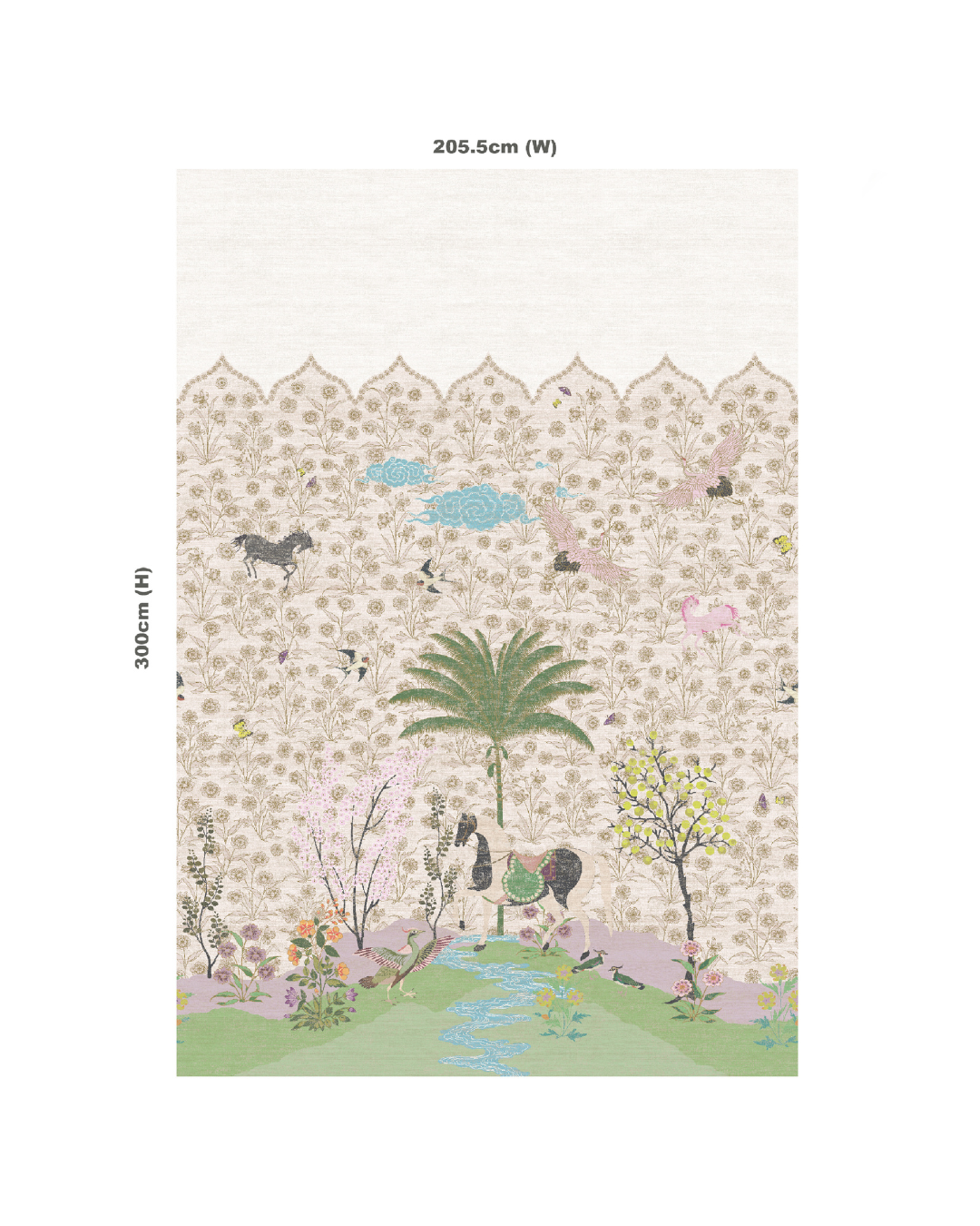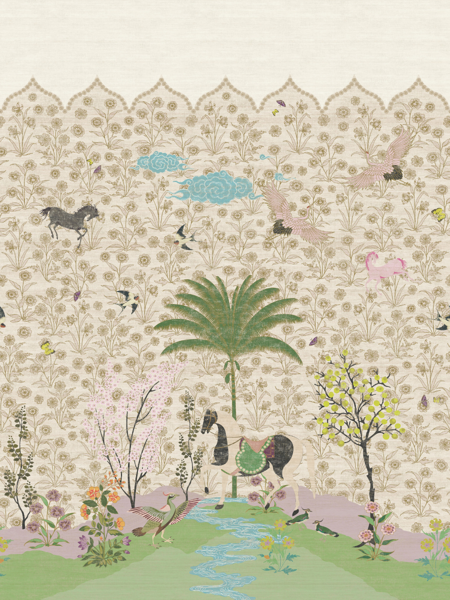The pure, vivid colours, delicate lines, influence from nature and the tradition of storytelling combine to make our Mughal art-inspired wallpaper something very special.