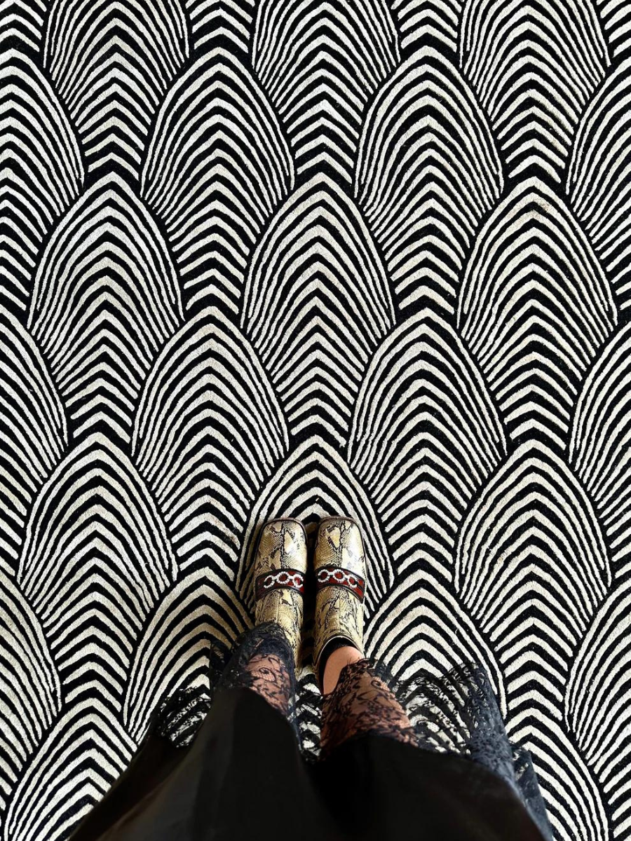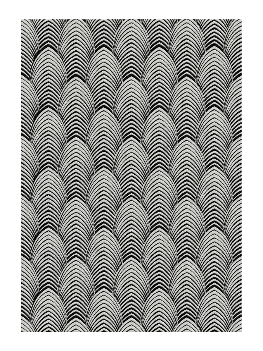 Inspired by Wendy’s Peacock design, the shimmering taupe repeat pattern of Plumage is a versatile, timeless classic. Contrasting black and taupe semi-circles converge, reminiscent of layered feathers, row upon row, creating a hypnotic design that draws the gaze.